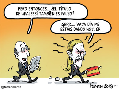 El humor político (o más bien, sobre la gestión política) no deja mucho hueco para reflexionar sobre otros temas aunque estén relacionados. Sobre las consecuencias para la Universidad Rey Juan Carlos que tenía la falsificación del máster no se habló tanto. Entre las mejores yo pondría a la de Gallego y Rey, que relacionó la decadencia de esta universidad con la del rey que le da nombre.